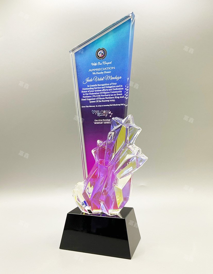 英文彩印水晶獎座